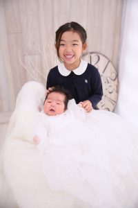 2ヶ月~3ヶ月になりますと、“社会的微笑”といわれるあやし笑いが出てきますので、笑顔のお写真を残されたい場合はおすすめの時期になります。