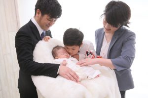 正式のお宮参りの時期にこだわる方、笑顔の時期にこだわる方、100日祝いにこだわる方、さまざまです。ご家庭でご相談されてみて下さい。